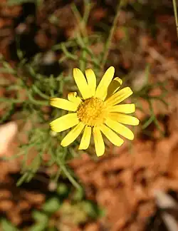 Ursinia nana DC. is an annual herb belonging to the daisy family of Asteraceae. It native to Africa, where it has a disjunct distribution in northeastern Africa (Eritrea and Ethiopia) and southern Africa (South Africa, Lesotho, Namibia, and Zimbabwe).[1] It is a pioneer plant of disturbed ground and usually grows to a height of only 30 cm. It flowers throughout the rainy season and, in mild weather with late rains, well into the autumn months. The leaves are deeply laciniate and bunched. In his 1912 contribution to Botanische Jahrbücher für Systematik, Pflanzengeschichte und Pflanzengeographie, the enigmatic German botanist Reinhold Conrad Muschler describes Ursinia engleriana, found near Okahandja in South West Africa, as a new species of African composite. Later this was considered to be the same as Ursinia nana described by de Candolle. Muschler praised the species as being extremely ornamental.[2]
