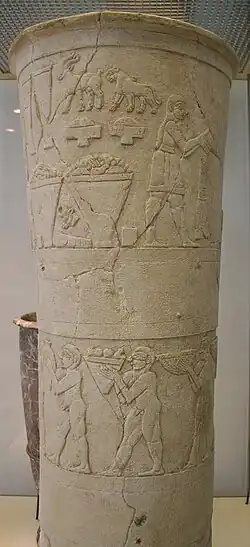![]() The original Warka Vase, dated to c. 3500–2900 BC. National Museum of Iraq, March 2019. | |