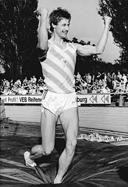 He won the bronze medal at the 1989 IAAF World Cup.[1] He became the East German champion in from 1986 to 1990, representing the SC Motor Jena[2] club. He had represented SC Turbine Erfurt before 1982, and TuS Jena after 1990. He also became indoor champion in 1990.[3]