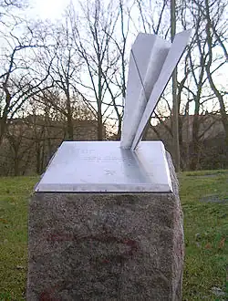 In August 1993 a JAS 39 Gripen fighter aircraft crashed on Långholmen only a few meters from the bridge after a low altitude, low speed manoeuvre during an air show. The pilot ejected safely and only one person on the ground was injured,[3] despite tens of thousands of people standing by watching. Today a small, sculpture on the site of the crash, a paper plane with its nose drilled into the soil, is commemorating the event. As a result of the accident, today air shows are forbidden over Riddarfjärden and no aircraft are allowed to pass under the bridge.