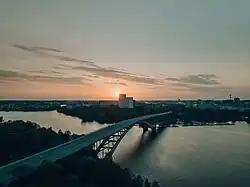 Västerbron (lit. 'the western bridge') is an arch bridge in central Stockholm, Sweden. With a total length exceeding 600 m, 340 m of which stretches over water, it is one of the major bridges in Stockholm, offering one of the most panoramic views of the central part of the city centering on Gamla Stan, the old town.