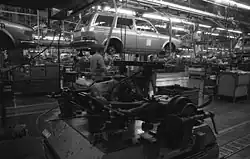 The post-war industrial plans for Germany set out rules that governed which industries Germany was allowed to retain. These rules set German car production at a maximum of 10% of 1936 car production.[23] By 1946, the factory produced 1,000 cars a month even though it was still in disrepair. Owing to roof and window damage, production had to stop when it rained, and the company had to barter new vehicles for steel for production.[24]
