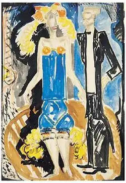 After returning to Kyiv in 1915, he worked at easel and monumental painting, graphic design, and costume design. His transition to scenography as his main field of artistic activity took place in the post-revolutionary years. From 1918–1921, he worked with scenographer and dancer Bronislava Nijinska (Vaslav Nijinsky's sister) in her ballet studio.[13] In end of this period he became a professor in the National Academy of Fine Arts and Architecture.[14][15]