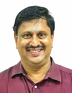 Vaikom Ramachandran (born 3 May 1962) is an Indian poet and lyricist who writes in Malayalam language. He is the author of Chottanikkara Bhagavathy Suprabhatham , Hariharathmajam , the Unarthpatt (Suprabhatham song)of Sabarimala Ayyappa Swamy.[1] He is a recipient of Kerala Kshethra Anushtana Kalavedi's Nadasree award and several other awards of great reputation including Thali Mahadeva Puraskaram, Udayanapuram Subrahmanya Swamy Temple Puraskaram and many others.[2] He has composed more than twenty-five Suprabhatham songs(Unarthpatt)of various temples including Sree Poornathrayeesa temple , Sabarimala and Chottanikara temple. The Suprabhatam composed by him is being played at Sabirimala and Chottanikara every morning. Another unique contribution of this poet is that the Slogan carved on granite installed beneath and written on brass behind Maraprabhu sculpture at Guruvayoor is penned by him. He has composed more than two hundred devotional songs and more than thousand Keerthans and Bhajans. This poet is popularly known as Bhaktha Kavi (Devotional Poet) since he is immersed in inducing bhakti into the heart of the common people by writing and publishing spiritual songs, keerthans, head to toe descriptions of Gods(Harisamgam..Sree Poornathrayeesa kesathipatham, Guruvayooappa Kesathipatham are all very popular), and also by writing and publishing spiritual articles.