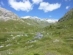 Val Minor is a valley in the municipal area of Pontresina, north of the Bernina Pass in Canton of Graubünden, Switzerland. The valley is at an elevation of around 2,400 m (7,900 ft). The valley entrance lies between the Piz Lagalb and Piz Alv. Val Minor is flanked by Piz Alv and Piz Minor on the right and Piz Lagalb on the left. At the end of the valley is the mountain lake Lej Minor. At present, it is accessible on foot or by bicycle.