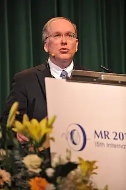 Val Murray Runge (born August 28, 1956, in Austin, Texas) is an American and Swiss professor of radiology and the editor-in-chief of Investigative Radiology.[1] Runge was one of the early researchers to investigate the use of gadolinium-based contrast agents for magnetic resonance imaging (MRI),[2] giving the first presentation in this field (in 1982),[3] followed two years later by the first presentation of efficacy (in 1984).[4] His research also pioneered many early innovations in MRI, including the use of tilted planes (for standardization of brain imaging, in 1987) and respiratory gating (for liver imaging, in 1984).[5][6] His publication on multiple sclerosis in 1984 represented the third and largest clinical series (to that date) investigating the role of MRI in this disease, and the first to show characteristic abnormalities on MRI in patients whose CT was negative.[7]