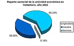 Valdemoro experienced a wave of industrialization during the 1980s, which resulted in a subsequent rapid increase in population. By 2002, the distribution of industry was as follows:[10]