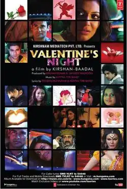 Valentine's Night is a 2012 Hindi-language romantic thriller film directed by Krishan Kumar and Baadal. It features Payal Rohatgi, Sangram Singh, Rahul Minz, Neha Thakur as the lead roles. The film's music was composed by Astitva-The Band. The film, produced by Kirshan Kumar and Sanjeev Malhotra, was released on 10 February 2012.[1]