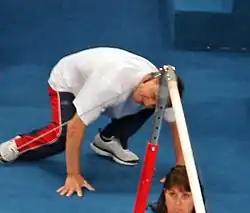 Liukin was the first man to do a triple back flip on floor and both a layout Tkatchev and a Jaeger with full twist on high bar.[2] He also has one of the most difficult skills in men's artistic gymnastics named after him, the triple back (tucked) somersault.