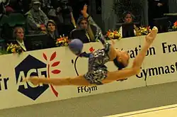 Valeria Kurylskaya performing with the ball at a competition in 2004