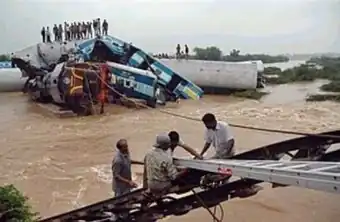 The Valigonda rail disaster occurred on 29 October 2005 between the Valigonda and Ramannapet stations, about 80 kilometres (50 mi) from Hyderabad in the Indian state of Andhra Pradesh (now located in Telangana).[2] A flash flood swept away a small rail bridge, and a train travelling on it derailed at the broken section of the line, killing at least 116 people and injuring many others. Many people were suspected of being washed away in flooded waters.[1] Initially sources had reported that about 150 persons could have been killed during the incident.[2]
