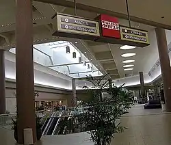 ![]() Interior view of Vallco Shopping Mall, then called Cupertino Square. This section of the mall was demolished in late 2019. | |