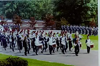Established in 1956, VFMAC Field Music is a separate unit of the Corps of Cadets and has its own officers and shares the same barracks and tactical officer. This unit is a reflection of the British volunteer Corps of Drums tradition. It continues the long heritage of US military field music through the years of the nation's existence and its armed forces. It also has a Drum and Bugle Corps legacy (through the use of brass instruments), and starting from AY 2011-2012, it also has a fife player on its rosters. Aside from its regular participation in school events, parades, on and off-campus formations, and other events, it has a storied history of appearances in Pennsylvania and New Jersey and has been assigned the honor of being the City of Philadelphia's honor guard for distinguished visitors to the city.