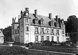 In return, he purchased other vases and also purchased columns to place in the château garden and had two greenhouses built.[11] After his death in 1925, the château was occupied by his widow and his daughter Renée and her husband, Adhémar Barré de Saint-Venant, when, on the night of 20 October 1948, a fire broke out in the main building because of a forgotten iron. Only a few parts of the building were not destroyed by the fire, including the basement, two staircases, the loggia and the kitchen wing. The main château stood as an unsecured fire ruin for 20 years before the remains were finally demolished in August 1968. In 1949, there was a plan to rebuild a part of the château to house a retirement home, but this was not realized. Only the kitchen wing, called the "orangery", was restored by the architect Maurice Boillé. The work was only one of a total of four renovations carried out during the 20th century.[5]