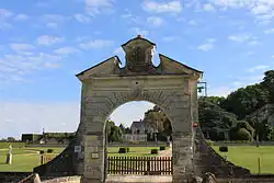 After the death of Thomas Bonneau, the estate passed through numerous hands and never belonged to one owner for long. In 1691, Etienne-Dominique Chaufourneau was recorded as the owner, but by 1703,[7] Valmer belonged to Gatien Pinon. In 1736, the property was up for sale again and was purchased by M. Duvelaer, the commander of the port of Lorient,[7] before being bought ten years later by Nicolas Chaban de La Rivière on 5 July 1746. His descendants remained owners until 1888. He increased the property's value by buying the neighboring seigneurie, La Côte, on 17 April 1756.[4] On his death in 1763, he left the château and its land to his sister Marie Chaban and her husband, Jacques Valleteau de Chabrefy, who bequeathed it to their son, Baron Thomas Valleteau de Chabrefy,[5][7] in 1766. After his death in May 1792, the château passed to his widow, Marie-Françoise Barré.[8] On 4 August 1810, the Seigneurie La Côte was again divided from the estate and given to Jérôme, Marie-Françoise's younger son.[4] The elder son, Thomas II, was to inherit Valmer in return, which happened in November 1825.[9] Thomas II had the frescoes in the younger castle chapel restored in 1826, as evidenced by his coat of arms cartouche in the chapel. He may also have had the tall Doric column in the center of the hornbeam labyrinth, which is still preserved today, and numerous vases placed in the garden.[9] They probably come from the Château de Chanteloup, which was dismantled and sold piece by piece in 1823.[9]