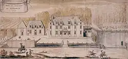 Jean's descendant, Claude Coustely, sold Valmer on 23 May 1640, to an advisor to Louis XIII, Thomas Bonneau, who made extensive remodeling and additions to the complex. The interiors were reworked in the Louis XIII style and, to the northeast of the building, Bonneau had a pavilion built in the same style from 1646 to 1647[5] to house the palace administrator. Because the new lord of the château found the old rock chapel too dark and damp, a new chapel was built on the west side of the steward's house called Petit Valmer, which was blessed on 25 October 1647.[4] To the south, Bonneau also had new farm buildings built and the gate erected as an entrance to the grounds. The present gardens and park also date back to Thomas Bonneau. Although there had already been an associated terraced garden since the first château from the 16th century, modeled on Italian Renaissance gardens, Bonneau had them reworked in the Baroque manner and additionally created the upper terrace (Haute terrasse in French).[2] He placed numerous vases and statues in the newly designed gardens and park. One known from him is a white marble statue commissioned by from the sculptor Jacques Sarazin, depicting Leda and Zeus (as a swan), and has been in the Metropolitan Museum of Art in New York since 1980.[7]