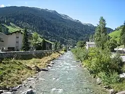 Below the Zervreila dam, the Valser Rhine flows through the Vals Valley and the municipality of Vals. Before the village of Vals, the Peilerbach joins the Valser Rhine, below the village, the Tomuelbach from Tomül Pass joins from the right. The Valser Rhine then flows past St. Martin and joins the Glogn at Suraua. Several kilometers downstream, the Glogn flows into the Anterior Rhine.