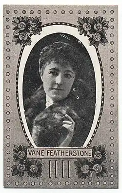 She debuted at the Olympic Theatre, and had small roles in plays in other London theatres, initially as "Miss Vane".[4] As her career progressed, she used the name "Miss Vane Featherston".[4] In 1884, she joined Charles Hawtrey's company.[4] She was eventually signed to a three-year engagement.[4] Featherston has 33 credits listed in the book The London Stage 1890–1899: A Calendar of Productions, Performers, and Personnel alone.[5] She also appeared in a number of Broadway plays from 1905 to 1922[6] and the film The Brass Bottle (1914).