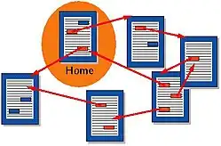Bush introduced the concept of the memex during the 1930s, which he imagined as a form of memory augmentation involving a microfilm-based "device in which an individual stores all his books, records, and communications, and which is mechanized so that it may be consulted with exceeding speed and flexibility. It is an enlarged intimate supplement to his memory."[87] He wanted the memex to emulate the way the brain links data by association rather than by indexes and traditional, hierarchical storage paradigms, and be easily accessed as "a future device for individual use ... a sort of mechanized private file and library" in the shape of a desk.[87] The memex was also intended as a tool to study the brain itself.[87] The structure of memex is considered a precursor to the World Wide Web.[88]