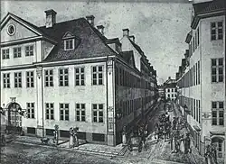 Lund's property was home to 7+ residents at the 1840 census. Johan Christian Lund (1789-1875) resided in one of the first-floor apartment with his five children (aged 12 to 15), husjomfru Elisa Denker, three drapers (employees), an apprentice, two male servants and two maids.[6] Michael Ditleff Bering, a grocer (urtekræmmer), resided in one of the first-floor apartments with his wife Charlotte Christine Bering (née Selmer),a grocer /employee), a grocer's apprentice, one male servant and one maid.