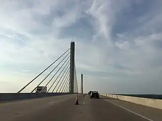 Varina-Enon Bridge is a cable-stayed bridge which carries Interstate 295 across the James River near Dutch Gap between Henrico County near Richmond and Chesterfield County near Hopewell, Virginia. It was opened to traffic in July 1990.