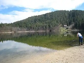 Vassacher See is a small lake north of the Carinthian city of Villach, Austria. Its surface covers an area of 4.43 hectares (10.9 acres), its maximum depth is 10.2 metres (33 ft).