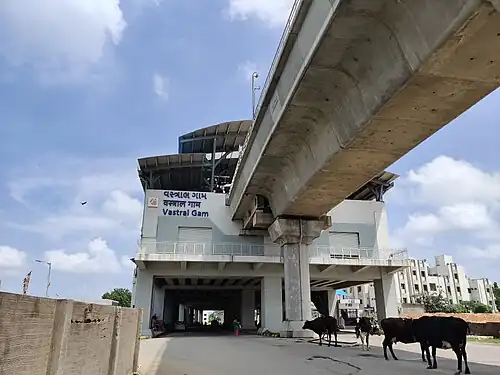 Vastral Gam is the elevated western terminal metro station on the East-West Corridor of the Blue Line of Ahmedabad Metro in Ahmedabad, India. This metro station consists of the main Ring Road Metro Circle which leads towards the Diesel Loco Shed, Vatva in the south and towards Naroda, a town in Gujarat in the north. This metro station was opened to the public on 4 March 2019.[1]
