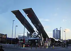 Work has involved design changes to traffic lanes, improved pedestrian and cycle crossings, refurbishment of walkways beneath the mainline railway viaduct, and the construction of a bus station, completed in December 2004 featuring an undulating steel-frame canopy and ribbed steel walls. An interesting feature of the canopy is a series of photoelectric cells generating electricity to offset the energy used by the bus station.