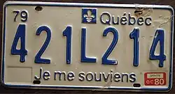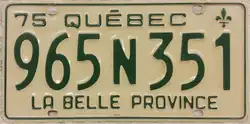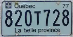 - ^ a b c d e f g Tanner, Eric N. "Québec Passenger License Plates". allaboutlicenseplates.com. Retrieved 21 November 2020.