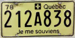From 1963 to 1977 (except 1967), licence plates carried the slogan La Belle Province ("The Beautiful Province"), a nickname for Quebec. Since 1978, they have carried Je me souviens ("I remember"), the official motto of the province.