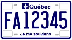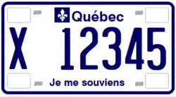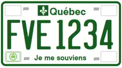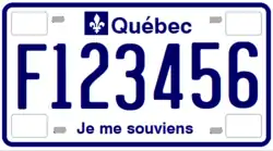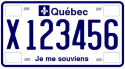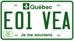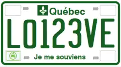- ^ "Categories of Licence Plates". Société de l'assurance automobile du Québec. Gouvernement du Québec. Retrieved 18 October 2020.
