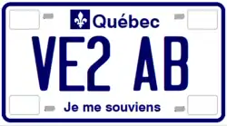Licensed Amateur Radio Operator's Vehicle | As current passenger plates | VA2 AB VE2 AB |