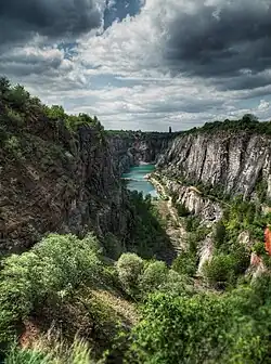 Velká Amerika is 800 m (2,600 ft) long, 200 m (660 ft) wide and up to 100 m (330 ft) deep quarry with an 18 m (59 ft) deep pair of lakes on the bottom. It is nicknamed "Czech Grand Canyon".[1]