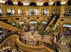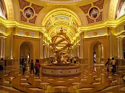 The Venetian Macao (Chinese: 澳門威尼斯人) is a hotel and casino resort in Macau, China owned by the American Las Vegas Sands company. The 39-story[1] structure on Macau's Cotai Strip has 10,500,000-square-foot (980,000 m2) of floor space, and is modeled on its sister casino resort The Venetian Las Vegas. It is the largest casino in the world,[2] the largest single structure hotel in Asia, and the tenth-largest building in the world by floor area.
