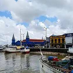 Ver-o-Peso Dock (Portuguese: Doca do Ver-o-Peso) is an open-air municipal public fish market and a small port area that belongs to the Ver-o-Peso Complex, located on the shores of Guajará Bay in the Cidade Velha neighborhood, in the city of Belém, the capital of Pará, Brazil. The dock is surrounded by the Clock Square, the Açaí Fair and the Ver-o-Peso Market.[1]
