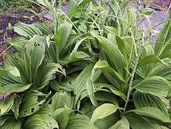 Propagation is by seed or by division.[10][11] However, a plant generally takes seven years to reach maturity and flower.[12] Snails and slugs feed on the plant's rhizomes and leaves, so gardeners must take care to keep these pests away.[2][9][12]