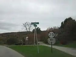 Now in the rural sections of Weybridge again, VT 23 makes a gradual curve to the southwest near the junction with Drake Road, the route returns to a parallel with the Otter Creek. Continuing along the creek, the route and the waterway make a big turn to the north, crossing through rural Addison County. VT 23 turns away from the creek for a short distance, returning to sides at Thompson Hill Road. At Thompson Hill Road, the route changes from westward to the north again, winding through farms to a junction with Snake Mountain Road. There, the route turns northeast for a short stretch, turning northward again and reaching a junction with the state-maintained VT 17 near the line with the towns of Addison and New Haven. This junction marks the northern terminus of VT 23.[5]