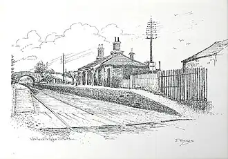 The Portadown, Dungannon and Omagh Junction Railway (PD&O) opened the station in 1858 as Verner's, named after local landowner William Verner.[2] Mr Verner did not want a standard PD&O station building as at Annaghmore and Trew and Moy, so at his request Verner's station was built to match his home at Churchill.[2] The station had no signal box and its signals were worked by a ground frame.[2]