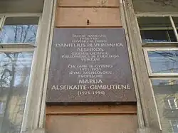 - ^ a b c d e f Vaišvilienė, Regina (21 July 2021). "Minėdami Mariją Gimbutienę, pagerbkime ir jos tėvus – gydytojus Alseikas". Mokslo Lietuva (in Lithuanian). 12 (677). ISSN 1392-7191.