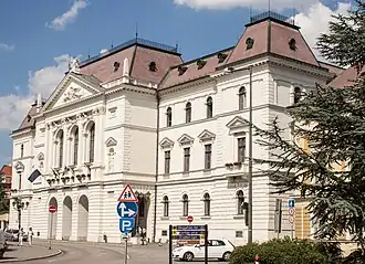 The Veszprém County Hall (Hungarian: Veszprém Megyeháza) is a representative historical building in Veszprém, Hungary. Designed by Budapest-based architect István Kiss, who won a competition in 1884, the building have a distinct angular layout enclosing a courtyard, a grand entrance, and an arched coach gate.[2] The building houses the Veszprém County Assembly.