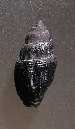 This species has an oval shell, more or less shouldered. It is very brown red, sometimes quite black. It is everywhere streaked transversely and provided with obtuse longitudinal ribs, which become distinct towards their base. The aperture is whitish to chocolate. The columella is four-plaited.[2][3]