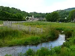 The Veyre is 32.7 kilometres (20.3 mi) long.[1] It has no concrete source given that it originates at the plateau des Monts Dore, from the confluence of two streams : la Narse et le Labadeau which begins at the Puy de Vedrine. La Veyre has the particularity of having had its flow breached around 10,000 years ago by a lava flow of the Puy de la Vache and the Puy de Lassolas which formed a volcanic reservoir, the lac d'Aydat. Shortly after the lac d’Aydat, the Veyre then disappears underneath the volcanic heath of la cheire d’Aydat, then reappears downstream of Saint-Saturnin. At Veyre-Monton, between Tallende and Veyre, it is joined by the Monne. It flows into the Allier at Les Martres-de-Veyre.