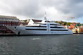 The main engines are 2 MTU 16V 595 TE70 diesel engines with power of 3492 kW. The yacht can reach a maximum speed of 18.5 knots (34.3 km/h), while the cruising speed is 15.0 knots (27.8 km/h). The ship's range, with a fuel capacity of 285.000 litres, is 5500 miles at a speed of 14 knots.[3]