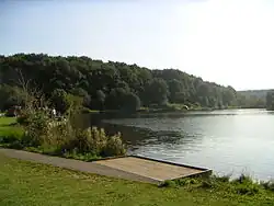 Thirty years later, the pool was a popular location for swimming and boating. It continued to be so during the First World War, when it was used by some of the 20,000 soldiers stationed nearby, and after the opening of Clipstone Colliery in 1922, numbers using the facilities were swelled by some of the 2,000 residents who moved into the purpose-built village of New Clipstone. Fishing also became popular, with the Duke awarding the fishing rights to the Clipstone Colliery Angling Club. Spoil tips from the mine gradually surrounded the lake and river, until tipping ceased in 1976. Nottinghamshire County Council then initiated a reclamation scheme, to transform the area into a country park. 25 acres (10 ha) of woodland were planted, and the park opened in 1982. Ten years later, ownership was transferred to the Newark and Sherwood District Council, and improvements were made using grants from Nottinghamshire County Council and the European Regional Development Fund. A part-time ranger was employed to manage the site in 1993, and this became a permanent post in 1999, when funding was received from the owners of Clipstone Colliery, RJB Mining.[3]