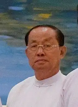 The vice presidents of Myanmar (also known as Burma) are the second highest-ranking posts in the government of the Republic of the Union of Myanmar.[2] The offices were established by the 2008 Myanmar constitution and rank directly below the president. The offices came into effect on 30 March 2011, when the new government assumed de jure power and essentially function in the same manner as any other deputy head of state. There are two vice-presidential posts in the government,[3] but no distinction is officially made between them. It can be assumed that the posts follow the order of seniority, much like the ones practised by the Vice Premier of the People's Republic of China.