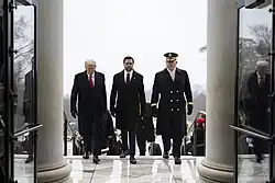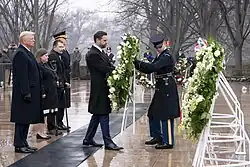 On January 19, Vance and Trump attended a wreath laying ceremony at the Tomb of the Unknown Soldier at Arlington National Cemetery.[70]