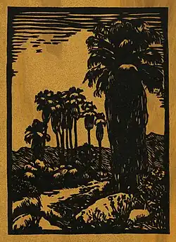 Matson was an enthusiastic printmaker. In the 1920s, he studied with Franz Geritz (1895–1945), one of Southern California's preeminent printmakers. In the last days of the Arts and Crafts Movement he made woodblock prints of familiar California subjects like the San Gabriel Mission, palm trees, and his own home. He also studied etching and other printmaking techniques. Among other venues, his prints were exhibited at El Alisal, the Charles Fletcher Lummis (1859–1928) home in Highland Park, California.