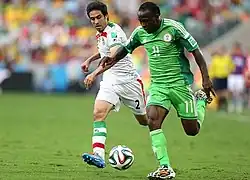 Moses was selected for Nigeria's squad for the 2014 FIFA World Cup[94] and started in their opening group match and the Round of 16 match against France as they lost 2–0.[95]