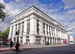 Although the exterior of the building is largely unchanged, the interior has been extensively modernised, with work completed in 2003. Interior features of historic interest were retained and refurbished to their former condition, including the original Art Deco ballroom which was transformed into the Bloomsbury Ballroom function venue, while other areas were substantially remodelled to create large amounts of office and leisure space. A retail area with open arcade was added to the Southampton Row frontage, recreating its former appearance prior to redevelopment in the 1950s.[2] From Autumn 2024, Victoria House has featured 300,000 sq ft of office, laboratory and amenity space for multinational pharmaceutical companies.[3]