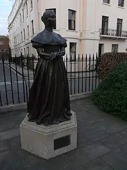 Fronting the square are 26 houses, which are all Grade II* listed which is the second tier (and so second-rarest) of the pyramidal-hierarchy protection and recognition system. These are five-storey stucco-fronted properties designed by architect Sir Matthew Wyatt (1805–1886), a member of the Wyatt family — son of sculptor Matthew Cotes Wyatt and the grandson of James Wyatt;[1] seeing them built in 1838–40[2] to celebrate the beginning of Queen Victoria's reign.